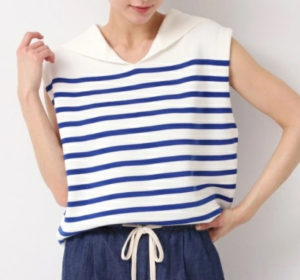 ドラマ「僕達はまだその星の校則を知らない」で堀田真由さんが着用していたノースリーブニットはDessin セーラーカラーボーダーニットです。