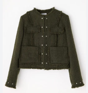 裾や袖口のフリンジがポイントのツイードジャケット。