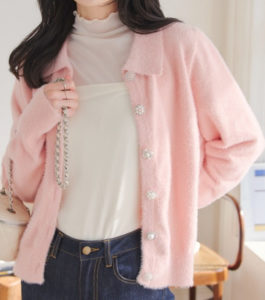 「Angel Heart ザ・クロックハウス」で橋本環奈さんが着用していたビジューカーディガンはKOBE LETTUCE 襟付きビジューボタンカーディガンです。