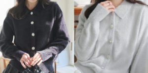 クラシカルな表情がトレンドの襟付きニットカーディガン。