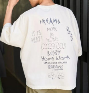 褪せたようなヴィンテージ加工に、ユニークな手書き風プリントが可愛いです。