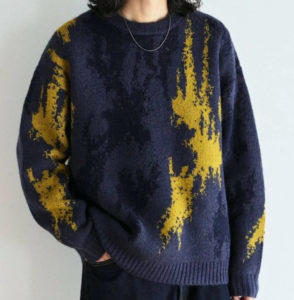 ファッション誌NON-NO 【連載「今月の彼氏」ウェブ限定版】で庄司浩平さんが着用しているニットはFREAK’S STORE Firsthand 総柄 ダブルジャガード ニット クルーネック プルオーバーです。