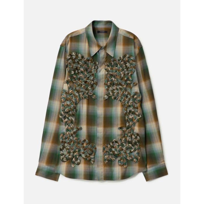 彫刻のような刺繍が生み出す立体感が魅力のチェックシャツ。