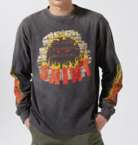 佐野勇人さんがインスタライブで着用していたTシャツはSAINT MICHAEL LS TEE LIVE IN HELL BLACK ROYAL FLASHです。