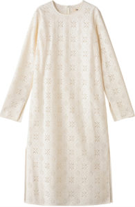 ほんのり透ける華やかなラッセルレースを贅沢にあしらった上品なワンピース。