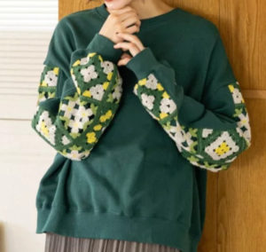 袖のクロシェ編みの切り替えデザインがオシャレなプルオーバー。