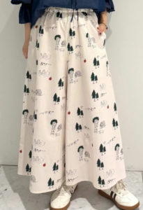 オリジナルのスワンレイク柄をプリントしたキュロット。