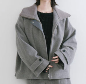 リブ編みで仕立てたニット襟をドッキングさせることで程よいカジュアルさとトレンド感をプラスしたデザインになっています。