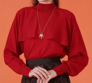 ノースリーブトップスに、ハイネックのショルダーウォーマーがセットになった新しいアンサンブルです。