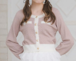 金釦に配色カラーが可愛いカーディガン。