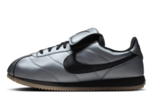 アッパーの光沢のあるシルバーと、ブラックのスウッシュロゴのコントラストが目を惹きます。