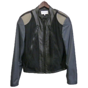 メゾンマルジェラの定番ハの字ライダースを異素材でアレンジしたライダースジャケット。
