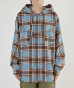 ルーズなシルエットにフードがアクセントになったチェックのシャツ。