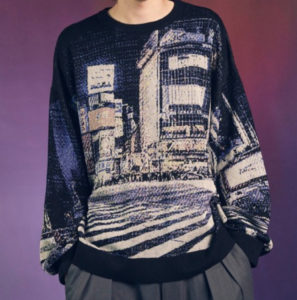 都市の代表的な風景をジャガード編みで繊細に表現したニット。
