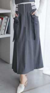 ロングリボンが揺れる立体的なワークポケットが目を惹くロングスカート。