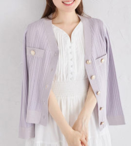 「めざましテレビ」で井上清華さんが着用していたカーディガンはLILLIAN CARAT レースデザインニットカーディガンです。