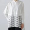 ゴールド調のボタンやネックラインと袖口からのぞく繊細なレースが、アクセントになっています。