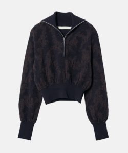 2種類の異なるテクスチャーの糸を組み合わせて立体的に織り上げ、まるで油絵のような雰囲気を表現したジップアッププルオーバー。