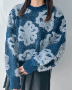 「=LOVE のイコラフ」で野口衣織さんが着用していたニットはAS KNOW AS plus フェザージャガードニットプルオーバーです。