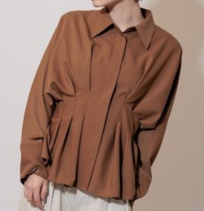 フロントに大きく入ったタックが特徴のビッグシルエットシャツ。