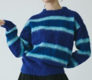 ふわふわとしたシャギー素材が可愛いボーダーニット。