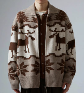「ラヴィット」で平井まさあきさんが着用していたジップアップカーディガンはimproves ノルディック柄 カウチンニット セーターです。