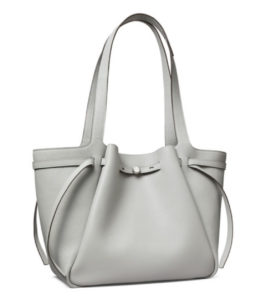 ソフトなペブルドレザーを使用し、ゆるやかなギャザーを寄せたロミー トートバッグ。