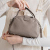 ソフトなペブルドレザーを使用し、ゆるやかなギャザーを寄せたロミー トートバッグ。