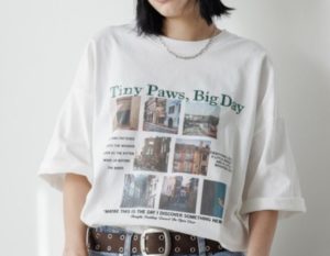 「ヒルナンデス」で塩﨑太智さんが着用していたTシャツはPBLIM ロストキャットTです。